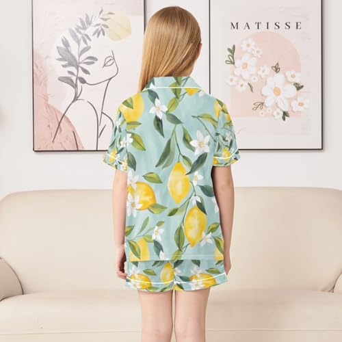 senya Light Blue Lemon Satin Summer Pajama Sets Silk Short Sleeve Button Down Sleepwear 2