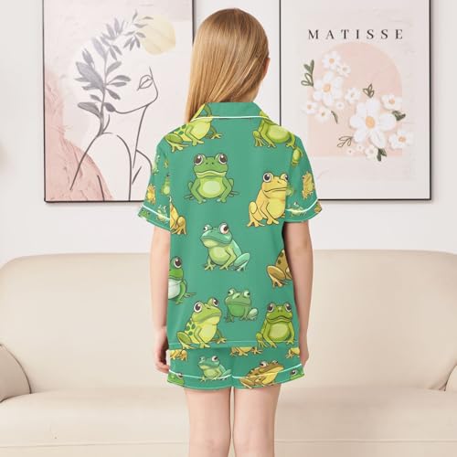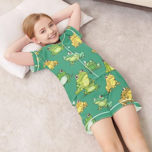 senya Cartoon Frogs Green Satin Summer Pajama Sets Silk Short Sleeve Button Down Sleepwear 2