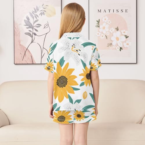 senya Sunflower and Lily Prints Satin Summer Pajama Sets Silk Short Sleeve Button Down Sleepwear 1