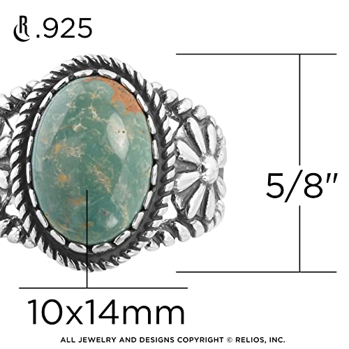 • Beautiful Western Jewelry- Naturally colorful Southwestern sterling silver ring designed by Carolyn Pollack features an oval-shaped 10x14mm blue Turquoise gemstone set in a scalloped bezel-setting, rope frame with rope split shanks that have a native-inspired concha flower on each side, with a polished oxidized finish. Turquoise provides mental relaxation, stress reduction, confidence, and balance. Attracts abundance and prosperity.
