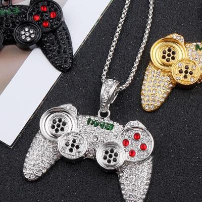 HOT ! Fun Crystal Game Controller Pendant Necklace for Men - Punk Hip Hop Style Friendship Necklace for Best Friends - Chunky Wide Gamer Necklace for Game Lovers- Unique Christmas Birthday Gifts for Son Grandson
