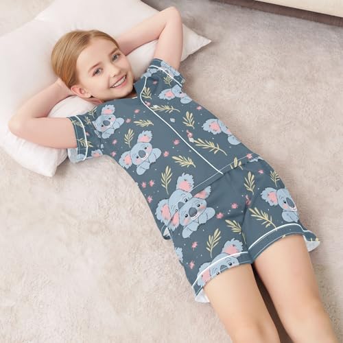 ALAZA Koala Leaves with Flower Pajamas Satin Pajama Set Short Sleeve Button Down Sleepwear 6
