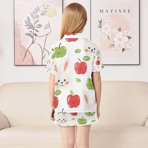 senya Rabbit and Fruit B Satin Summer Pajama Sets Silk Short Sleeve Button Down Sleepwear 1