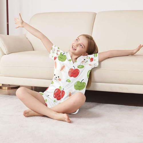 senya Rabbit and Fruit B Satin Summer Pajama Sets Silk Short Sleeve Button Down Sleepwear 5