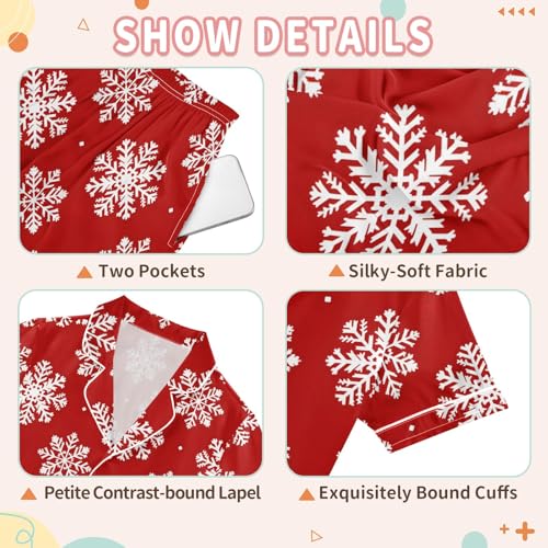More information about Red Snow Holiday Pattern Summer Satin Pajama Set, Cute Button-Down Sleepwear Pj Set for Sleep Wears