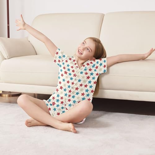 Star Pattern Summer Satin Pajama Set, Cute Button-Down Sleepwear Pj Set for Sleep Wears 6