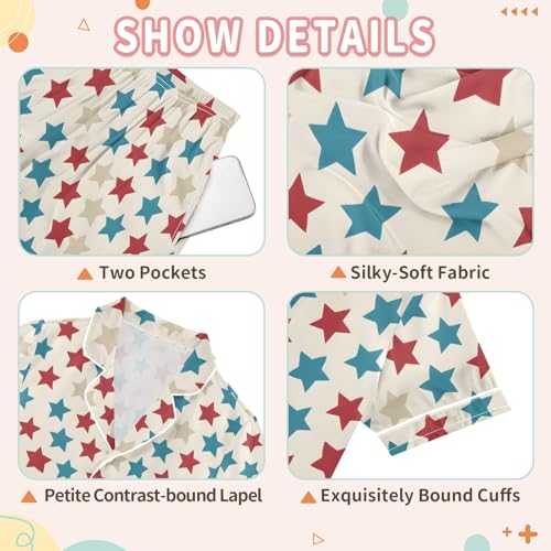 Star Pattern Summer Satin Pajama Set, Cute Button-Down Sleepwear Pj Set for Sleep Wears 4