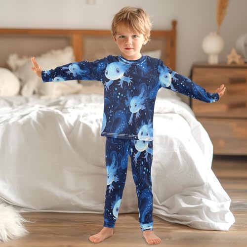 Pajama Sets Long Sleeve Blue Axolotl Pattern Prints Soft Comfy Sleepwear 2 Piece PJS 3-8T 2