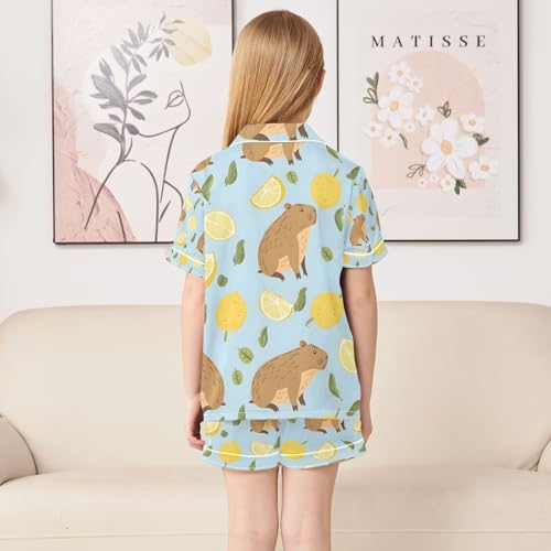 senya Cute Capybara Lemon A Satin Summer Pajama Sets Silk Short Sleeve Button Down Sleepwear 3