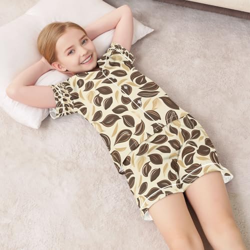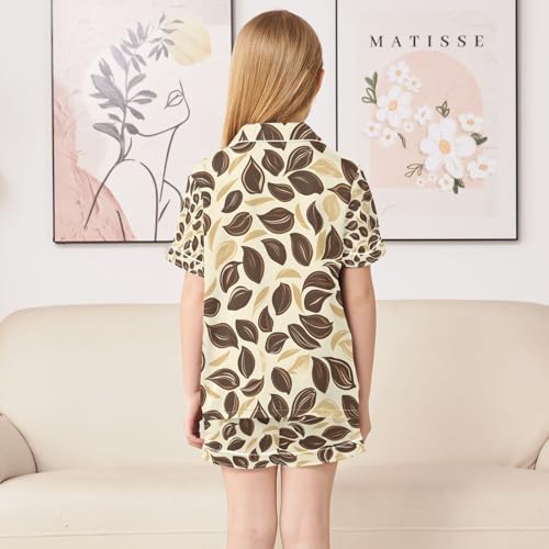senya Coffee Leaves Satin Summer Pajama Sets Silk Short Sleeve Button Down Sleepwear 1