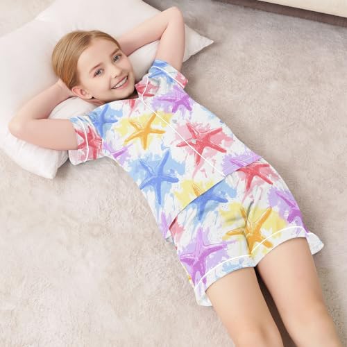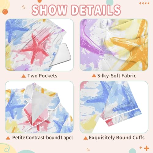 HOT ! Watercolor Starfish Pattern Summer Satin Pajama Set, Cute Button-Down Sleepwear Pj Set for Sleep Wears