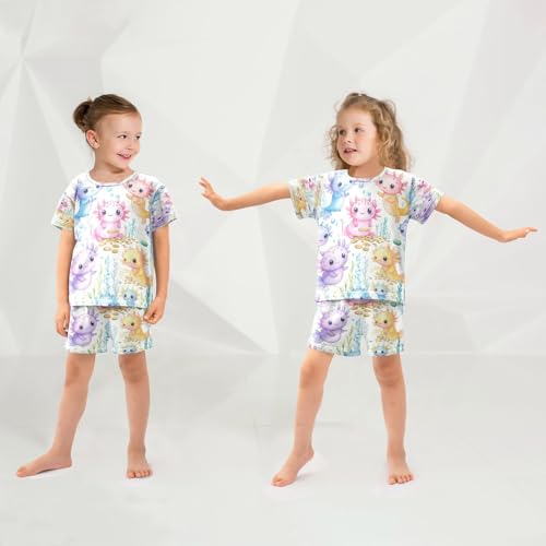 Pajama Sets Short Sleeve Cute Axolotl Watercolor Pattern Prints Soft Cotton Summer Sleepwear 2 Piece PJS Size 5-14T 5