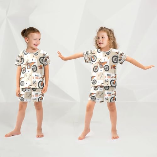 Pajama Sets Short Sleeve Motorcycle Pattern Print Design Soft Cotton Summer Sleepwear 2 Piece PJS Size 5-14T 6