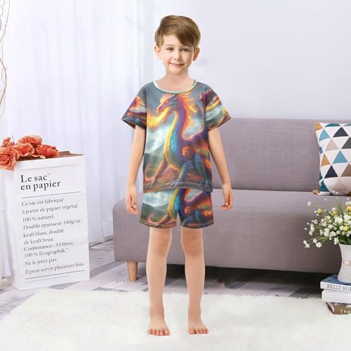 Pajama Sets Short Sleeve Dragon Breathes Fire Artwork Soft Cotton Summer Sleepwear 2 Piece PJS Size 5-14T 2