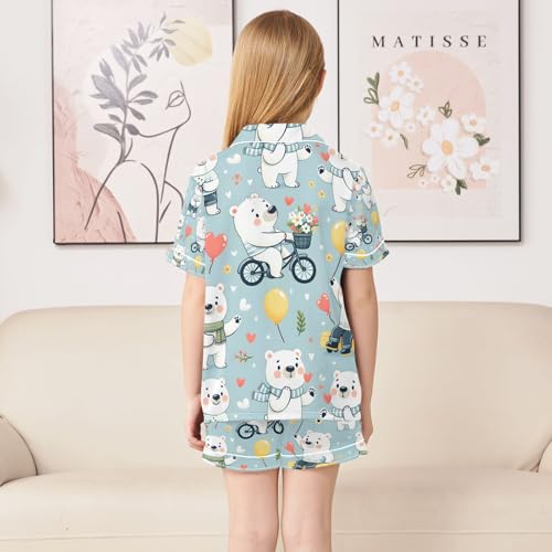 senya Cute Cartoon Polar Bears Satin Summer Pajama Sets Silk Short Sleeve Button Down Sleepwear 1