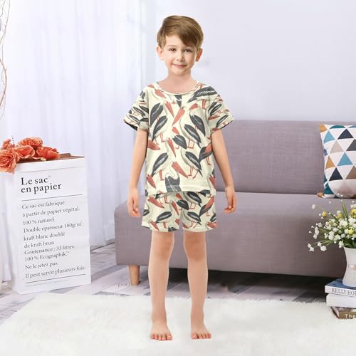 Pajama Sets Short Sleeve Stork Pattern Print Design Soft Cotton Summer Sleepwear 2 Piece PJS Size 5-14T 1