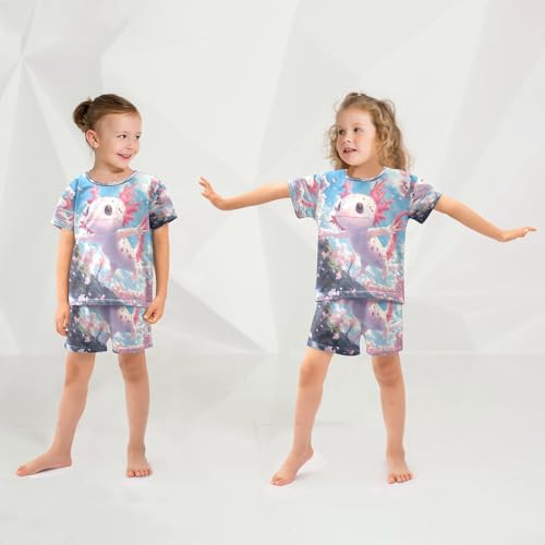 Pajama Sets Short Sleeve Cute Axolotl Pink Cherry Blossoms Soft Cotton Summer Sleepwear 2 Piece PJS Size 5-14T 3