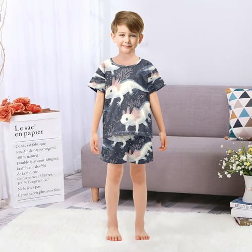 Pajama Sets Short Sleeve Cute Axolotl in Darkness Soft Cotton Summer Sleepwear 2 Piece PJS Size 5-14T 5