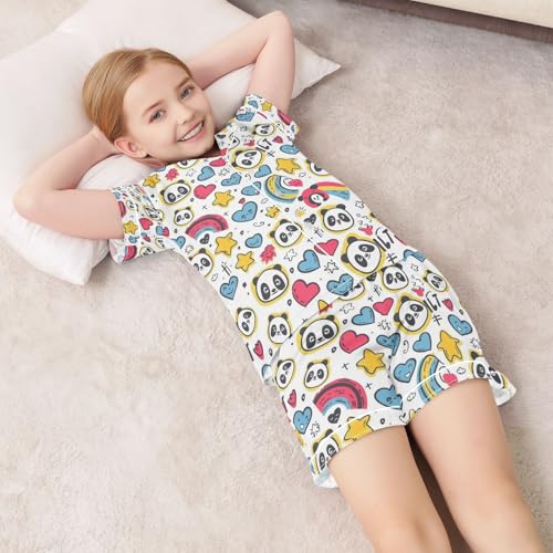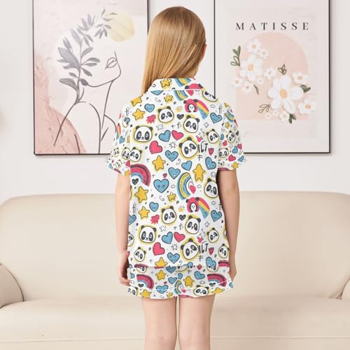 senya Heart Star Panda Satin Summer Pajama Sets Silk Short Sleeve Button Down Sleepwear 6