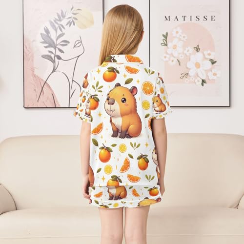 HOT ! senya Funny Capybaras Satin Summer Pajama Sets Silk Short Sleeve Button Down Sleepwear