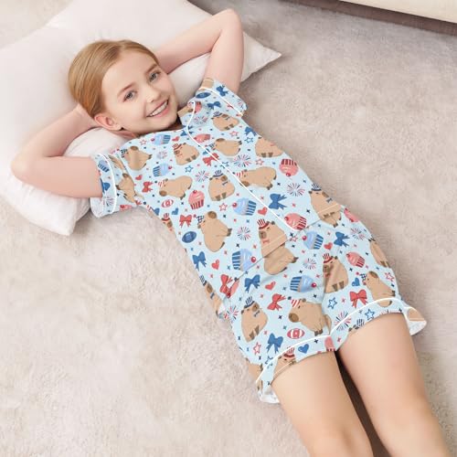 • 🌷 Pattern - Various cute bright colorful pattern design let your little one more stylish. Cute and vibrant patterns of dogs, cats, capybara, hearts and so on. This summer pajama sets can add some playful and funny elements to bedtime.