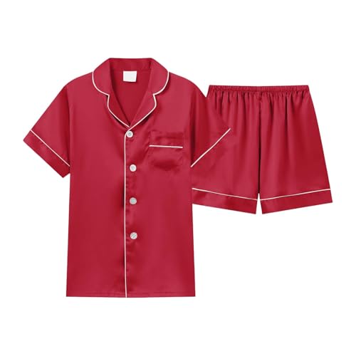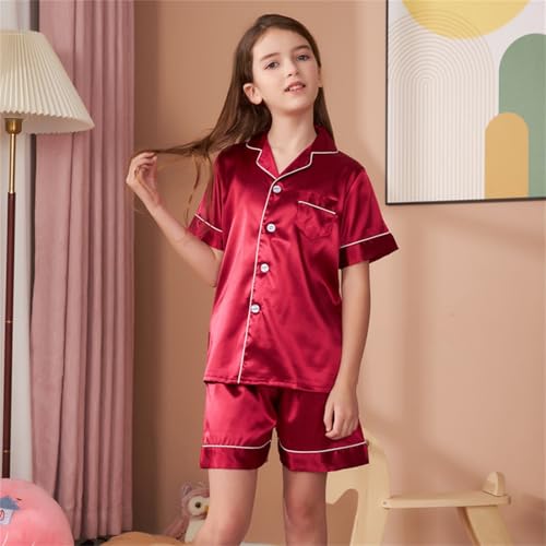 HOT ! Teen Girls 𝐒ilk 𝐏ajama Set Short Sleeve Satin 𝐏ajamas Button Down Sl𝐞epwear for Girls 𝗦nug (RD2, 13-14 Years)