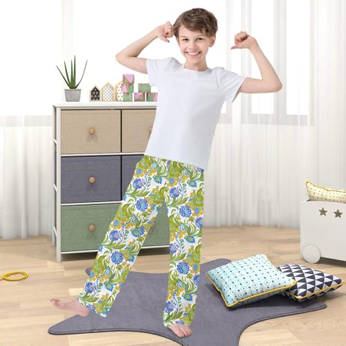 J JOYSAY Floral Foliage Artwork White Pajamas Pants Soft Long Pajama Bottoms Lounge Sleep Pants Size S-XL 7