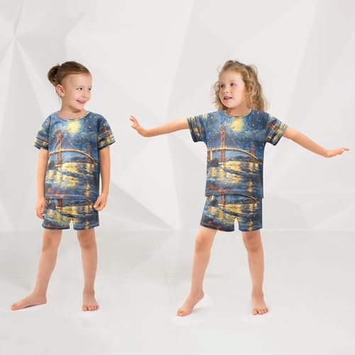 ALAZA Van Gogh Starry Sky Bridge Pajamas Set Short Sleeve Cotton Sleepwear Summer Pjs 2 Piece 5-14Y 2