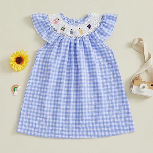 • Design: Toddler first day of kindergarten outfits for girls pre k feature pencil/abc letters/books embroidery, smocked, peter pan collar, puff short-sleeved, plaid dress, super chic and stylish, your little princess will be so eye-catching at the back to school day