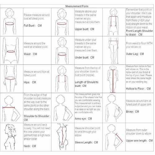 • SIZE SELECTION: We have US standard size 0 2 4 6 8 10 12 14 16 18 20 22 24 26. Please refer to the standard size picture on the left (the last one in the main picture) to choose the right size. If you are not sure about your size, you can consult me, or you can choose custom size , if you want to customize the size, please send us your bust, waist, hips, shoulder to floor height, heel, if you want to customize the color, you can send us the photo of the color you want (Free customization).