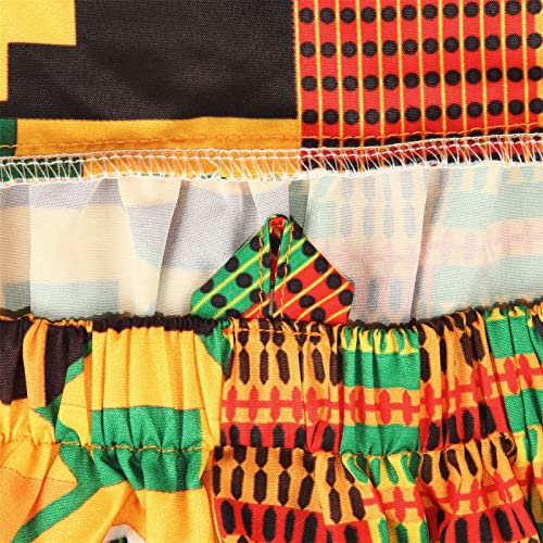 Girls Boho African Style Dress Maxi Casual Dashiki Dress Traditional Floral Print SIing Skirt Little Girl Dress with 3