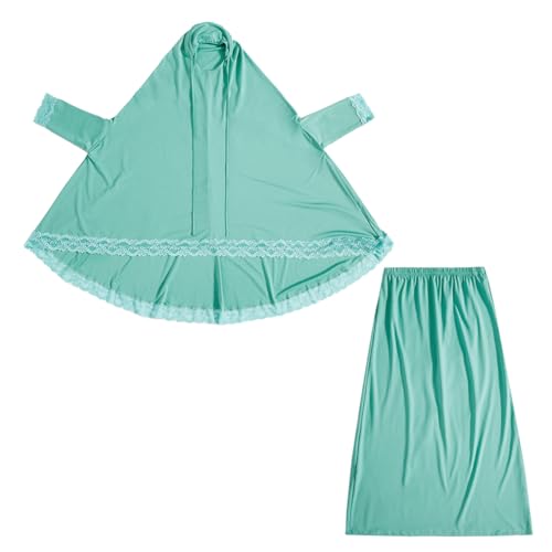 FYMNSI Muslim Clothes for Girl Kids Abaya Dress Full Cover Lace Hijab Dress Islamic Kaftan Khimar Skirt Set Prayer Dress 2PCS 2