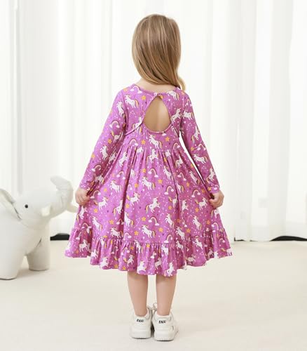 Toddler Girls Dress-Viscose Made from Bamboo, Long Sleeve Dress Buttery Soft Twirly Dress Ruffle Skater Dresses 4