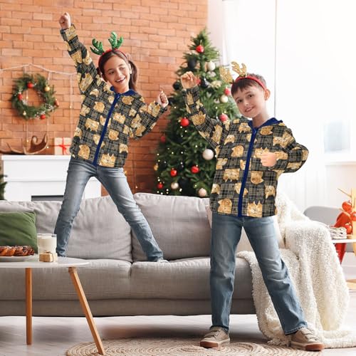 Plaid Cat Toddler Fleece Jacket Baby Boys Hooded Zipper Long Sleeve Thick Warm Outerwear 3-10 Years 3