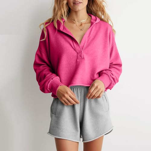 HOT ! Crop Tops for Women V Neck Hoodies Fashion Teen Girls Y2K Clothes Casual Long Sleeve Workout Shirts Going Out Tops