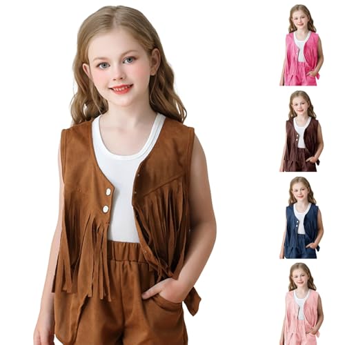 Girls Sleeveless Tassel Cardigan Tops V Neck Faux Suede Western Cowboy's Waistcoat 5 to 14 Years Jacket Tank Top 5