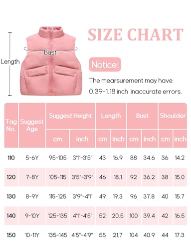 • Boys Girls Vest is Made of Nylon & Polyester. Kids winter vest, zipper closures, stand-up collar, sleeveless, 2 pockets, and the cropped puffer vest made of windproof fabric