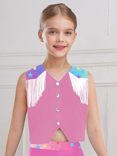 Hedmy Girls Printed Patchwork Vest kids V-Neck outfits Chest Fringes with Press Button tops 4