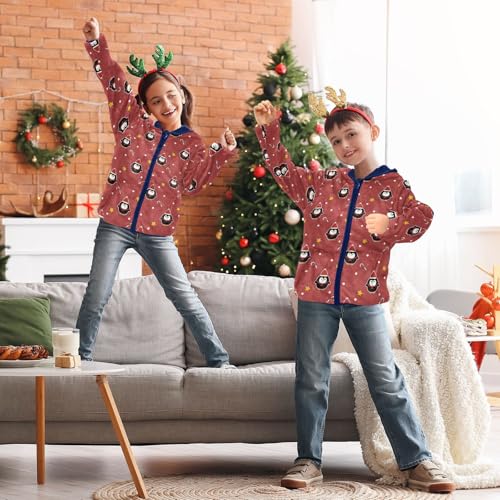 Penguins and Candy Girls Fleece Jacket Girls Fall Jacket Girls Zip Up Hoodie Girls Sherpa Jacket 2-10T 2