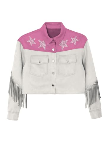 Kids Girls Cowboys Jacket Long Sleeve Tassel Coat Rhinestone Fringe Outerwear for Party Fancy Dress Up 6
