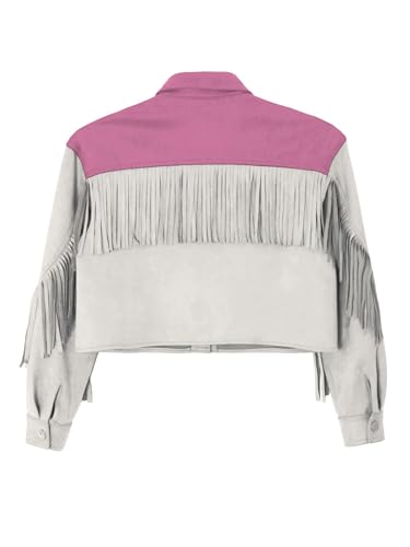 Kids Girls Cowboys Jacket Long Sleeve Tassel Coat Rhinestone Fringe Outerwear for Party Fancy Dress Up 4