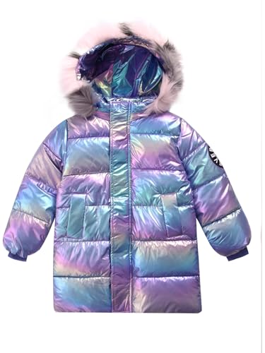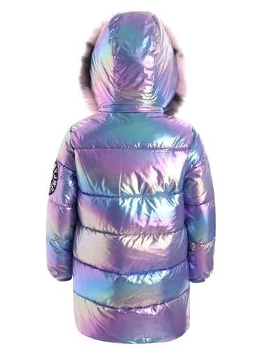TiaoBug Kids Girls Shiny Metallic Hooded Down Jacket Winter Coat Parka Waterproof Windproof Puffer Jacket Snow Outwear 7