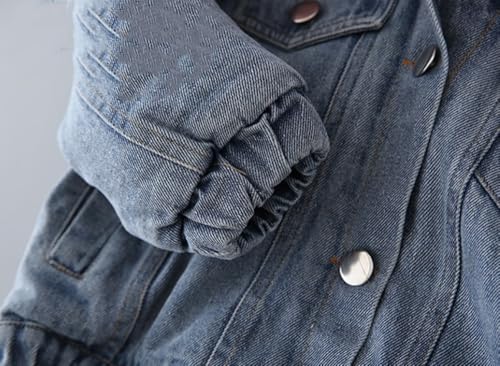 Girls' Classic Faux Fur Collar Denim Jacket Hooded Thicken Fleece Lined Jean Coat Plush Winter Hoodie Outwear 5