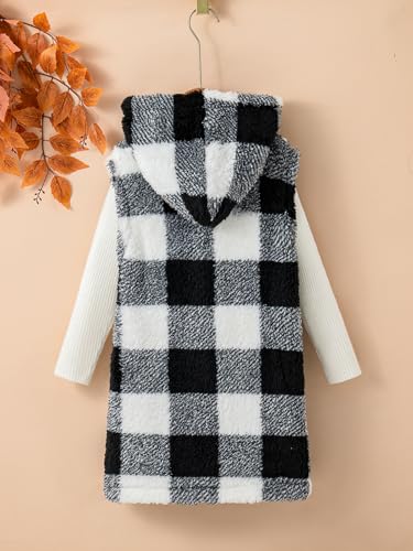 Girls Plaid Fleece Hoodie Vest Kids Long Winter Coats Sleeveless Outerwear 5