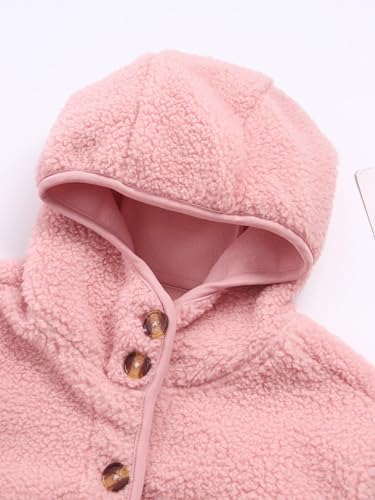 Kids Girls Winter Snow Polar Fleece Hooded Jackets Long Sleeve Button Blazer with Pockets Thermal Thick Outerwear 3