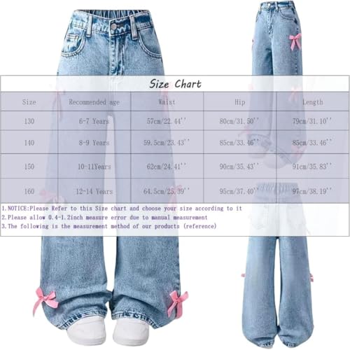 More information about Bow Jeans for Girls Wide Leg Kids Baggy Flare Denim Pants High Waisted Cute Clothes Y2k Outfits with Pockets 6-14Y
