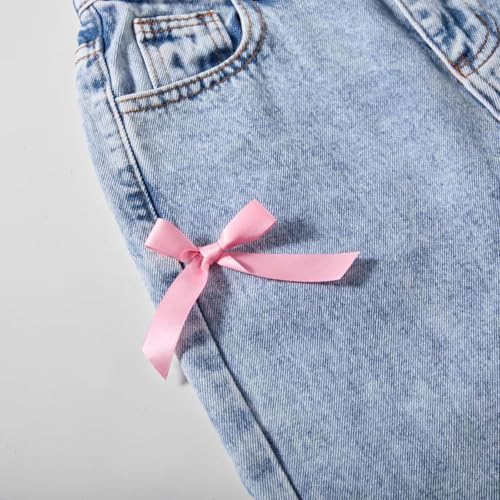 • Unique Design with Cute Bows:Featuring adorable pink bows along the seams, these jeans add a playful touch to any outfit.This unique design makes them a standout piece in your child's wardrobe, suit for casual outings and playdates