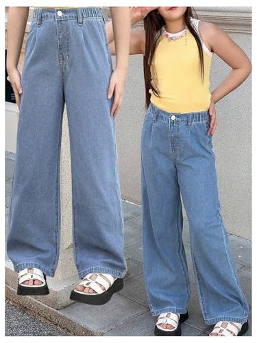 SweatyRocks Girl's Wide Leg Jeans Elastic Waist Loose Y2K Denim Pants Long Trousers 4