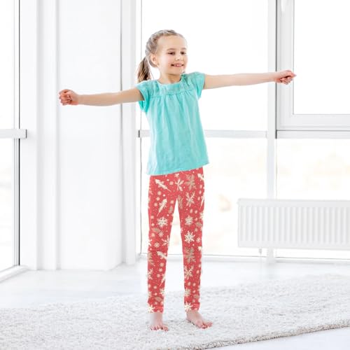 KLL Merry Christmas Snowflake Red Hoho Girls Cotton Leggings Soft Full Length Pants Gym 5