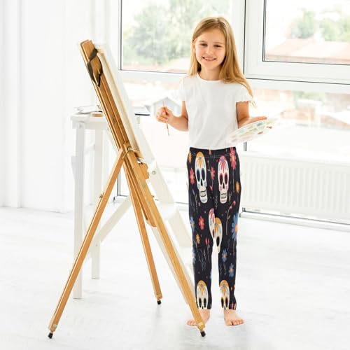 Toddler Girls Leggings Printed Yoga Pants Leggings Skull Head Blue Flower for Kids 4